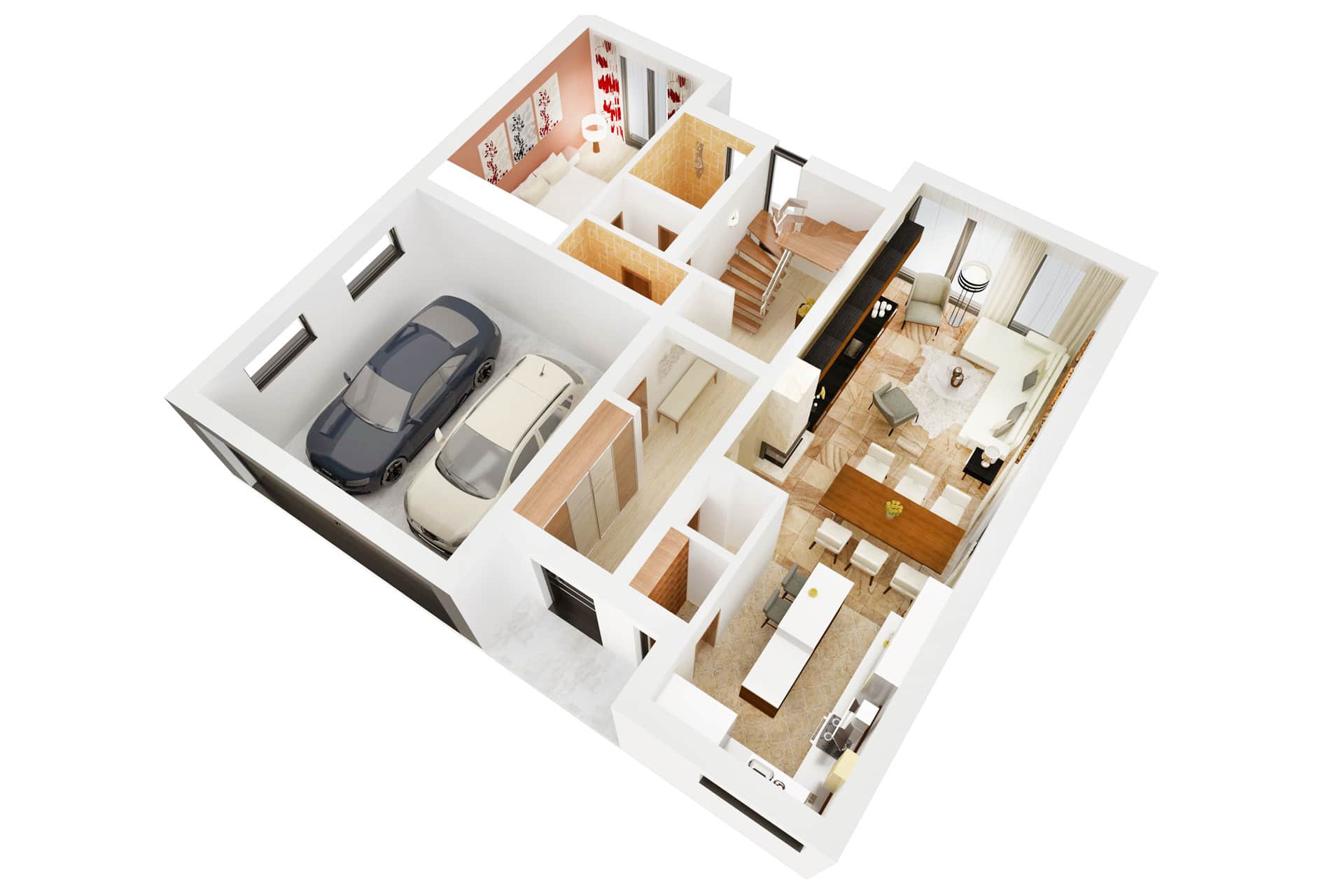 - Vchodové dveře barva plast bílá/bílá, interiérové dveře